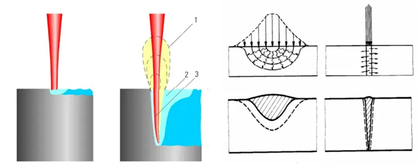 تشمل اللحام بالليزر نوعين رئيسيين: اللحام بالتوصيل الحراري واللحام بالاختراق العميق. ويكمن الفرق الأساسي بينهما في كثافة الطاقة المُطبقة على سطح المعدن في وحدة الزمن؛ إذ تختلف القيم الحرجة باختلاف المعادن.